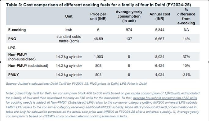 A recent report by the Institute of Energy Economics and Financial Analysis (IEEFA) found that for a family of four in Delhi, using e-cooking was more affordable than using non-subsidised LPG or PNG. In FY2024-25, the annual cost of using e-cooking for a family of four was Rs 5,844, 14% lower than PNG and 37% lower than LPG (without the universal Rs200 government subsidy). Even with the subsidy, using LPG for cooking was found to be 10% more expensive than e-cooking.